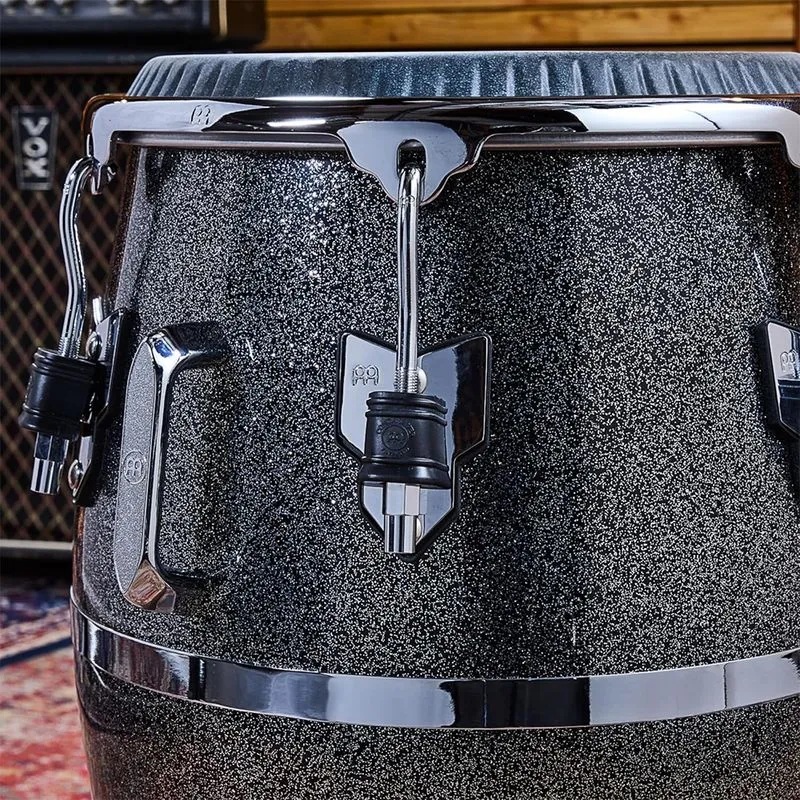 Su construcción en fibra de vidrio proporciona gran proyección, durabilidad y estabilidad ante cambios climáticos. Incorpora orejetas de afinación resistentes de 10 mm y borde SSR redondeado de 4 mm, que garantizan afinación precisa y una resonancia controlada. Los parches Skyndeep® de piel de becerro negra REMO® aportan un tono profundo y definido, ideal para estilos afro-cubanos, salsa y música latina contemporánea. El hardware cromado completa un instrumento con estética y desempeño profesional.